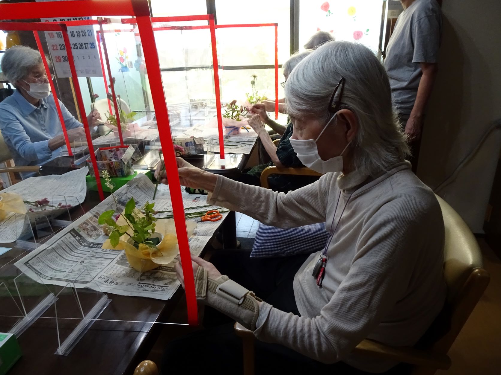 新型コロナの感染防止の観点から控えていたフラワーアレンジメント。