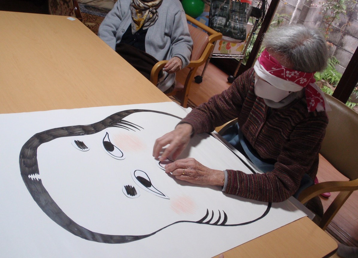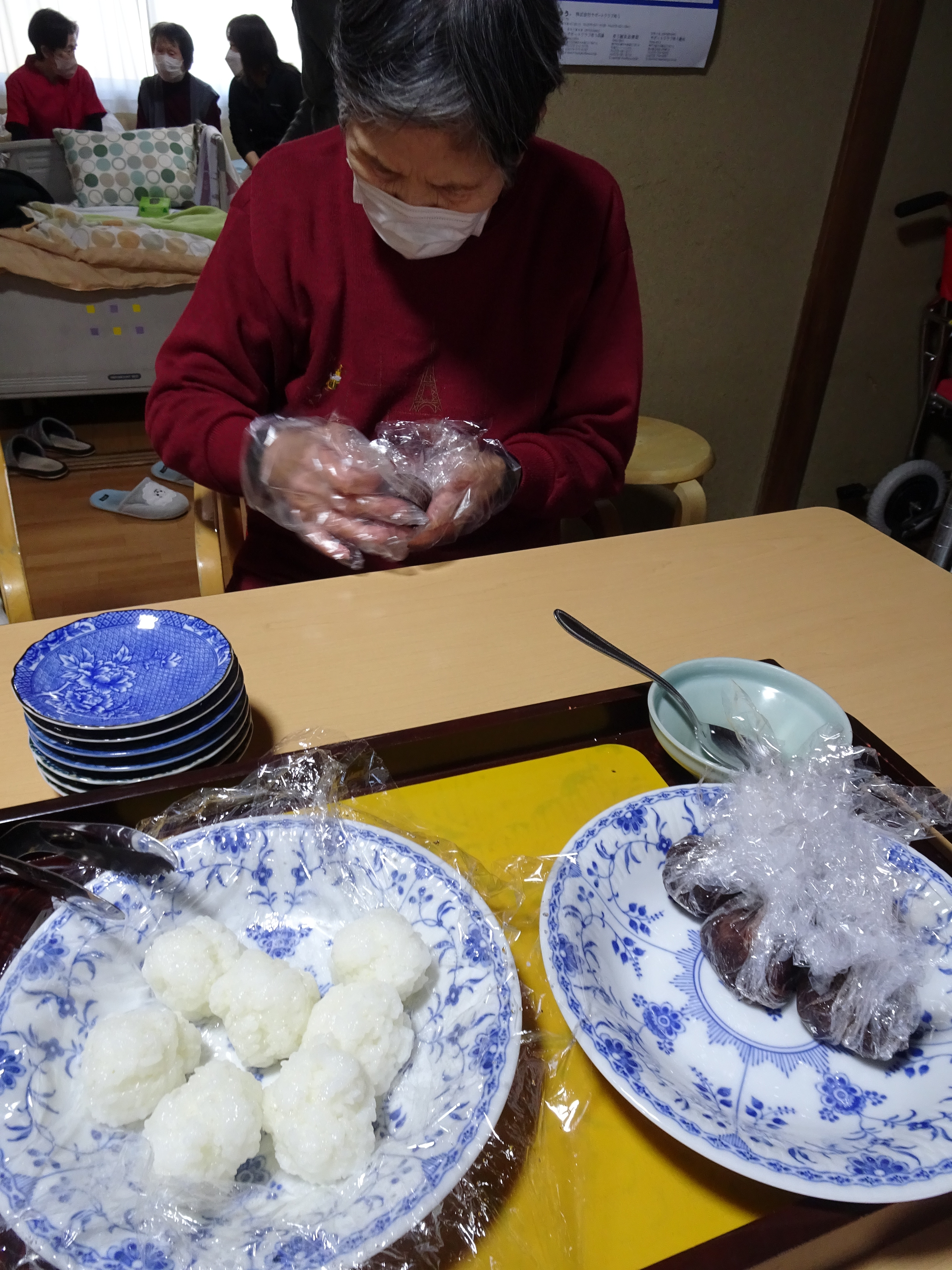 お正月の昼食には、黒豆や紅白なますや伊達巻きなどのお節料理をいただき、食後はカルタや福笑いをして遊びました。