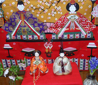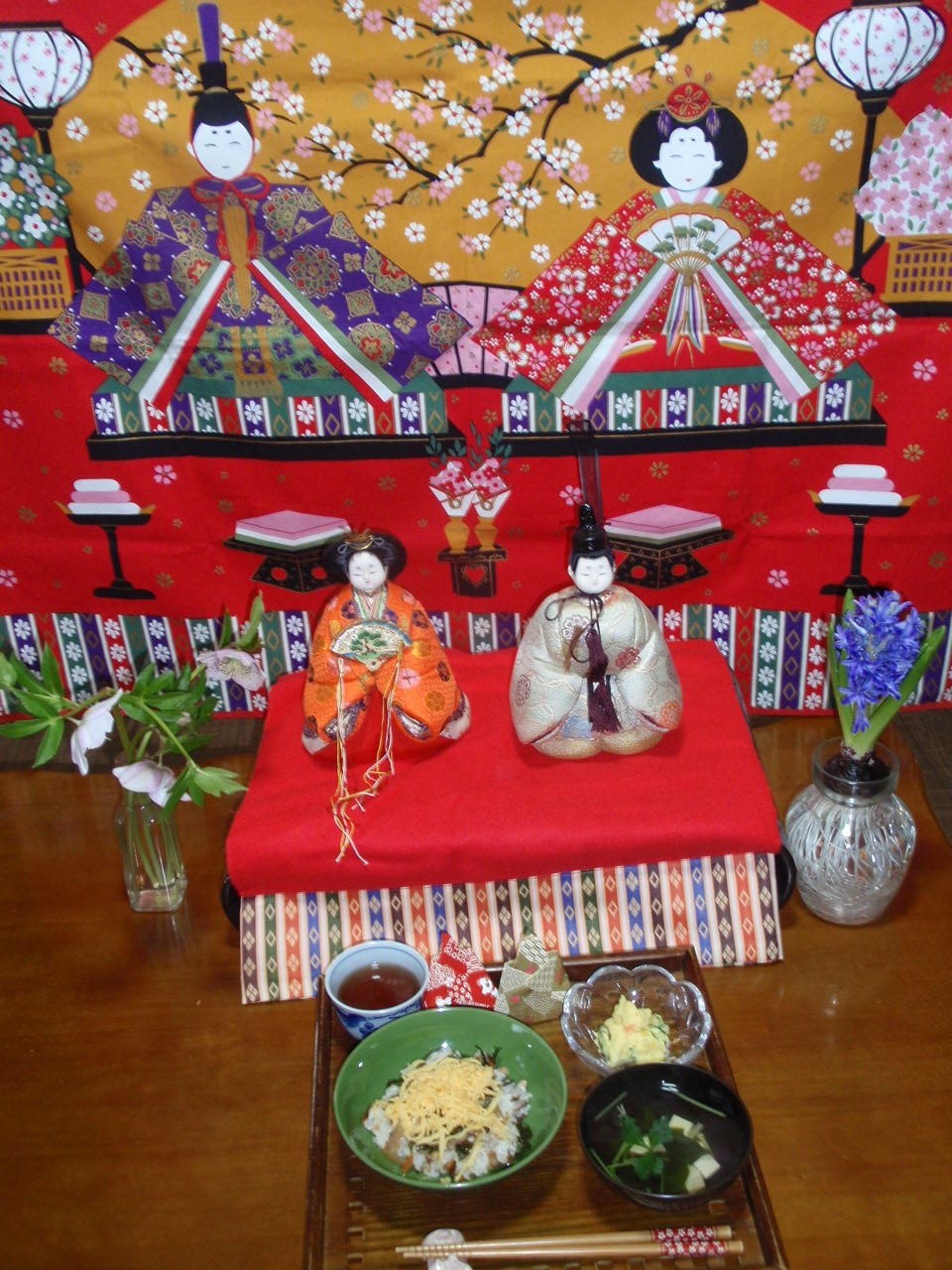 おひなさまにも昼食のちらし寿司を差し上げます。
